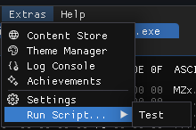 After building, simply put all generated `.dll` files in the `<ImHex Folder>/scripts/custom/dotnet/<Plugin Name>` folder. `Main.dll` is the main script file, if it contains a `Main()` function, it will show up in `Extras -> Run Script...` menu where it can be executed.