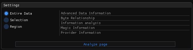 To start the analysis, first select the start and end address that will be analyzed. Afterwards simply click on `Analyze page` to start the analysis.