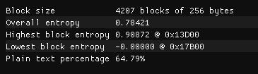 * `Highest block entropy` and `Lowest block entropy` shows the value and address of the block with the highest or lowest entropy value.