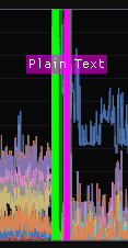 Besides just byte types, the graph also highlights regions that have a lot of bytes of the same value in green and regions that most likely contain English plain text in purple.