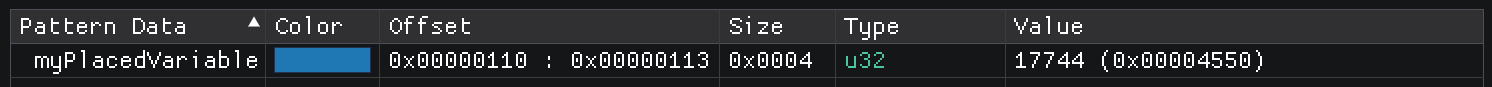This creates a new unsigned 32 bit variable named `myPlacedVariable` and places it at address `0x110`.